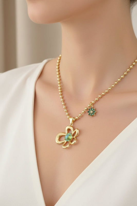 DressAtR 18K Gold Plated Plating Ball Chain Green Pendant Necklace