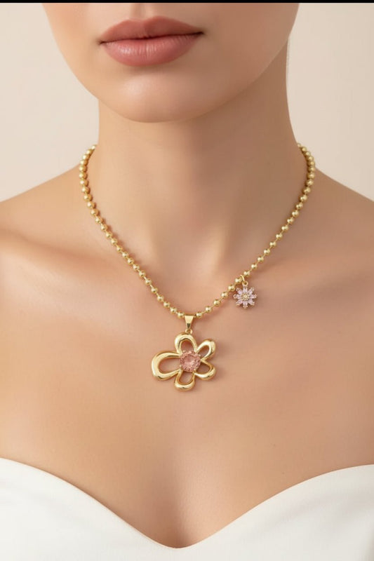 DressAtR 18K Gold Plated Plating Ball Chain Pink Pendant Necklace