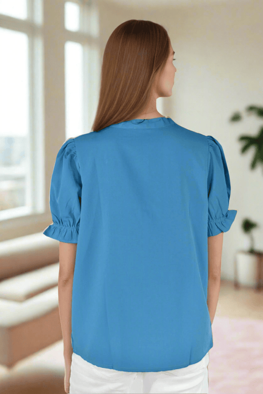 1 reviewSky Blue Ruffle High Neck TopRegular price $66.50Regular priceUnit price / per$95.00Sale price $66.50Sale